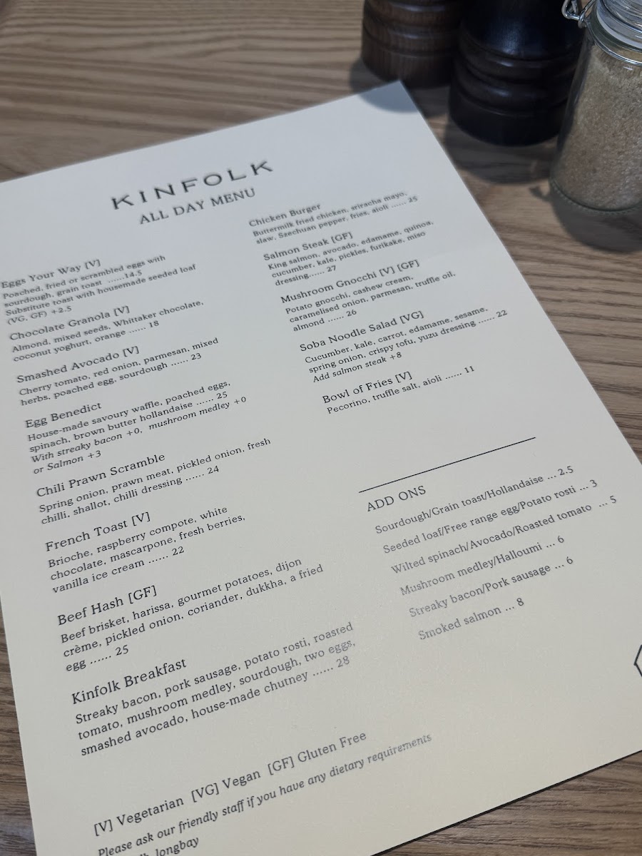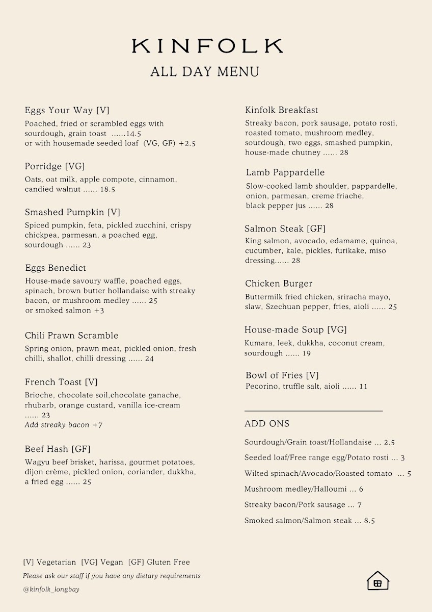 Kinfolk Cafe & Eatery, Long Bay Village Menu